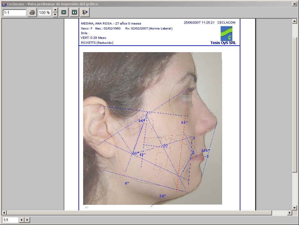 En esta pantalla te encontrás con la resolución gráfica del cefalograma y las opciones asociadas a ella.
